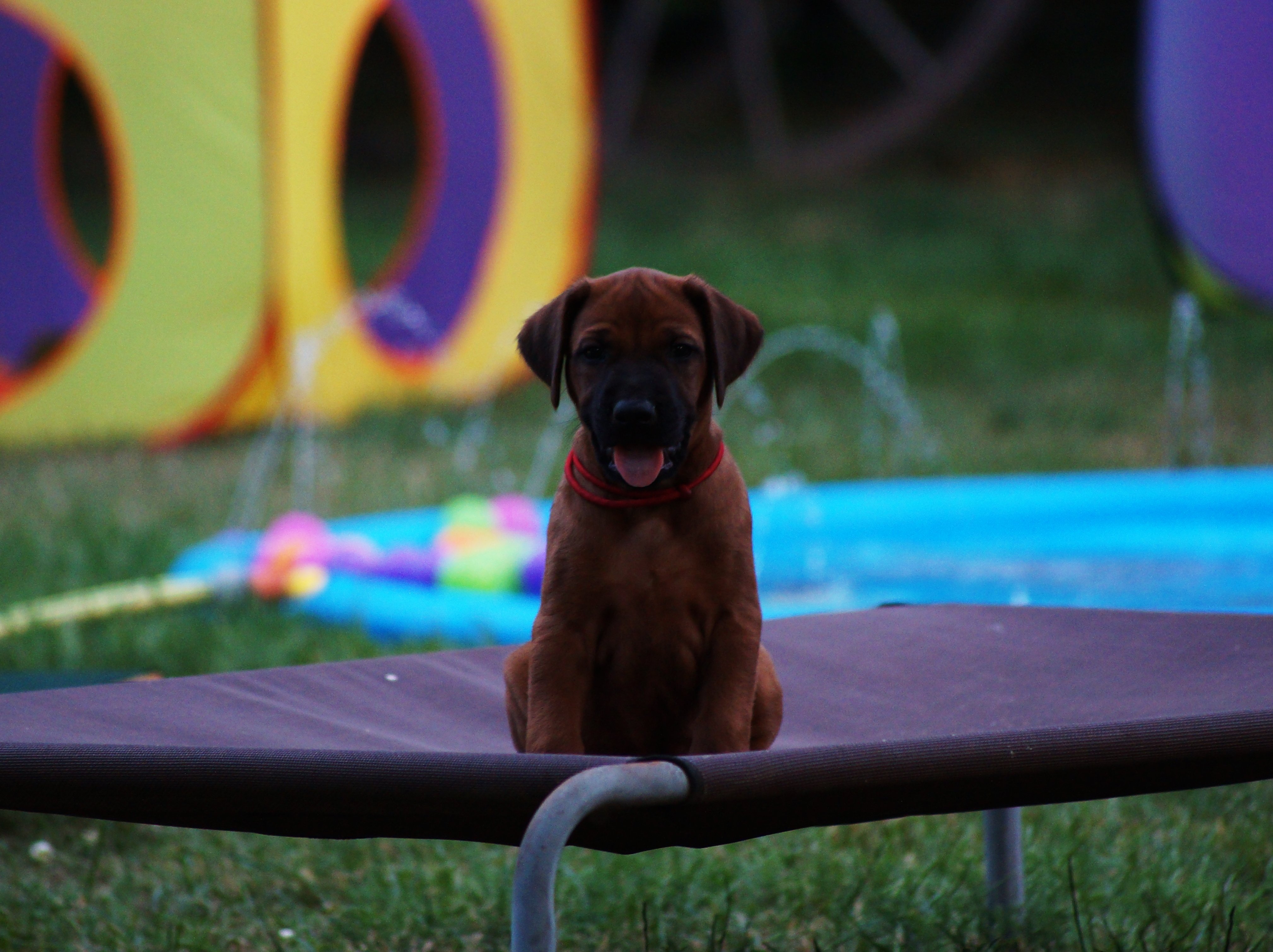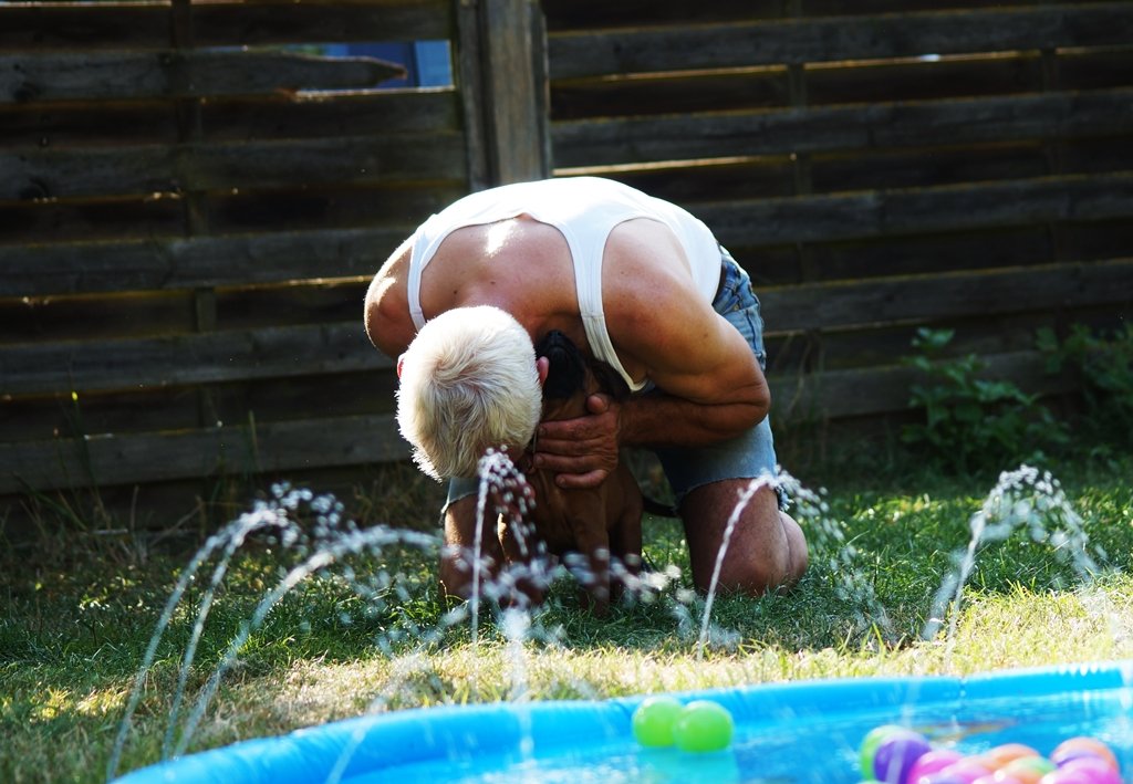 23. Juli 2019 Unser Herrchen knutschelt uns immer so vielund unser Wasserspielzeug ist sooo toll bei der Hitze.